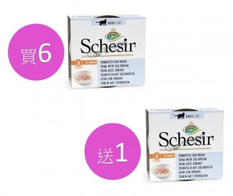 >> Schesir無穀物吞拿魚海鯛肉汁貓罐頭70g x7pcs