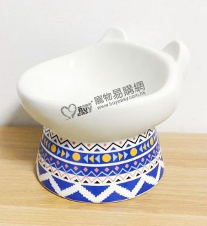>> 波西米亞貓形陶瓷碗(藍色)